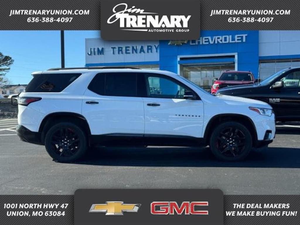 Heated and cooled memory front bucket seats, 3rd row seat, back up camera, navigation, dual panel moon roof, remote start, tri-zone automatic climate control with individual climate settings, hands free pwr liftgate, 4G LTE Wi-Fi hotspot capable, 4D sport utility, 7 passenger, 3.6L V6 SIDI VVT, 9-speed automatic, FWD, 20" argent metallic machine faced aluminum wheels, roof rail, split folding rear seat, remote keyless entry, heated door mirrors, Chevrolet Infotainment 3 Premium system with connected navigation / 8" diagonal HD color touchscreen / AM/FM stereo / Bluetooth audio streaming for 2 active devices / Apple CarPlay and Android Auto capable / enhanced voice recognition / additional memory for in-vehicle apps / cloud connected personalization for select infotainment and vehicle settings, subscription required for enhanced and connected services after trial period, Bose premium 10-speaker system, heated includes AUTO heated steering wheel mounted audio and cruise controls, traction control, lane keep assist with lane departure, lane change alert with side blind zone alert, rear park assist with audible warning, following distance indicator, dual front and side impact air bags and rear cross traffic alert. All the right ingredients! Come to the experts! This is the vehicle for you if you're looking to get great gas mileage on your way to work! Have one less thing on your mind with this trouble-free Traverse. Thanks for looking hope to hear from you soon. Ask for Internet Sales. Come and See Jim Trenary Deal Makers