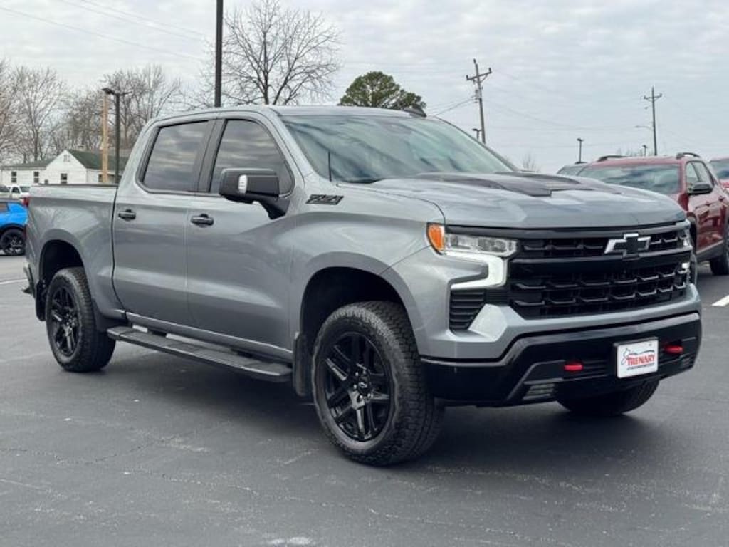 Leather heated 40/2040 front split bench seat, back up camera, bedliner, tonneau cover, keyless open and start, remote start package, dual-zone automatic climate control, 4DR crew cab, 5.3L V8, automatic, 4WD, 18" high gloss black painted aluminum wheels, cornerstep : rear bumper, rear 60/40 split bench seat, heated leather wrapped steering wheel w/cruise and audio controls, OnStar equipped (service required), tailgate : gate function manual with EZ Lift includes power lock and release, heated and power door mirrors, Chevrolet infotainment 3 premium system with Google built-in / 13.4" diagonal HD color touchscreen / includes multi-touch display / AM/FM stereo / Bluetooth streaming audio for music and most phones; featuring wireless Android Auto and Apple CarPlay capability for compatible phones / advanced voice recognition / in-vehicle apps / personalized profiles for infotainment and vehicle settings, 6 speaker audio system, deep tinted glass, trailering package includes trailer hitch : 7-pin and 4-pin connectors, traction control, stability control system with proactive roll avoidance and traction control includes electronic trailer sway control and hill start assist, following distance indicator, forward collision alert, hitch guidance dynamic single line to aid in trailer alignment for hitching, dual front and side impact air bags, front anti roll bars and tire pressure monitoring system with tire fill alert. Gently used. Be the talk of the town when you roll down the street in this 2023 Chevrolet Silverado 1500. The rig that works as hard as you do.