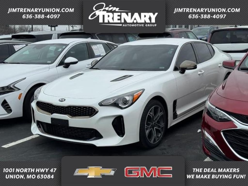 Leather heated memory front bucket seats, backup camera, proximity key for doors and push button start, dual zone front automatic air conditioning, automatic headlights, 4D sedan, 2.0L Twin Scroll Turbo 4-Cylinder, automatic, AWD, 18" alloy wheels, split folding rear seat, Illuminated and remote keyless entry, AM/FM/MP3/HD/SiriusXM audio system : 7" color touch-screen display / 6 speakers / UVO eServices infotainment system / support for Android Auto and Apple CarPlay / USB input / Bluetooth wireless connectivity with voice recognition / wireless phone charger and steering-wheel-mounted controls, sport heated leather/metal-look steering wheel with mounted audio controls, heated and power door mirrors, lip spoiler, multi-link rear suspension with coil springs, traction control, front and rear anti roll bars, blind spot collision warning blind spot, parking distance warning front and rear parking sensors, forward collision-avoidance assist, dual front and side impact air bags, tire specific low tire pressure warning and over head air bag. Ride is well sorted. Want to save some money? Get the NEW look for the used price on this vehicle. Climb into this terrific 2021 Kia Stinger GT line, knowing that it will always get you where you need to go, on time, every time. Thanks for looking and we hope to hear from you. Ask for Internet Sales. Come and See Jim Trenary Deal Makers